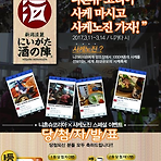 사케를 좋아하는 사람이라면 한번쯤은(한번이 아니라 사실 매번...)가보고 싶을 니가타에서 매년 개최되는 사케노진이라는 축제가 있다. 니가타 지역의 양조장이 모여서 시음도 하고 본인들의 사케도 판매하는 축제로 매년 봄철 겨울 술빚기가 어느정도 끝날 시점에 열리고 있다. 올해는 일본주류 수입회사인 니혼슈코리아와 하나투어가 사케인들을 대상으로 패키지를 구성하여 상품을 선보였고, 패키지가 나온 시점에서 부터 꼭 가고 싶었으나.... 가장 큰 문제는 금전이겠지.. 뭐.. 간절한 사람에게는 방법이 생긴다고 니혼슈코리아에서 이번 첫 투어 생성을 기념해서일지 이벤트를 개최하였고 정말 열심히 응모하여 (진짜 열심히 응모했다).... 이벤트에 당첨!!!!! 아싸.. (니혼슈코리아 페이스북에서 캡쳐해 왔습니다.) 뭐... ..